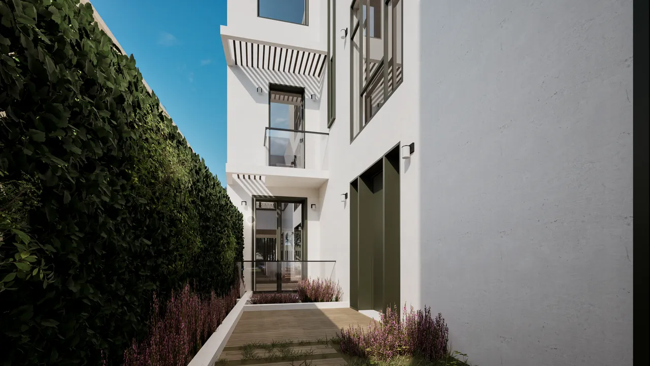 This two-storey residence with an attic was designed to accommodate two families, with an emphasis on functional autonomy and integration into the unique morphology of the elongated plot.